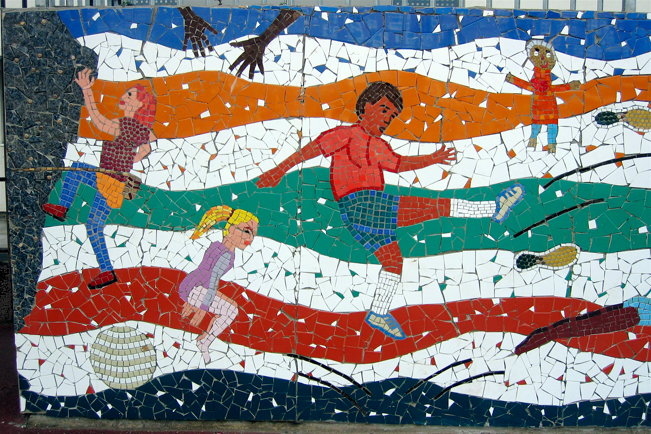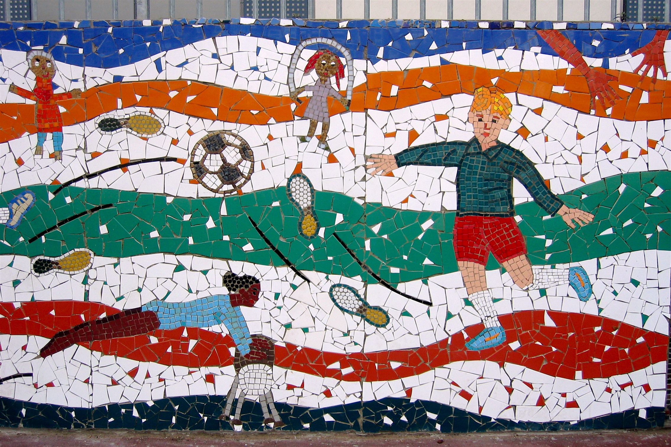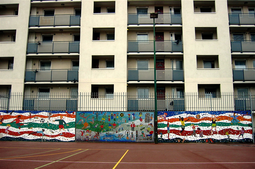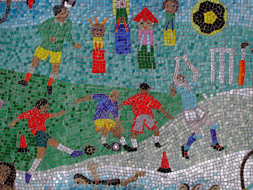 Through Bow Arts Trust I worked with children from Marner Primary School in East London to create large scale wall mural to raise the profile of sport. We looked at depicting many different sports used both in school settings and out.